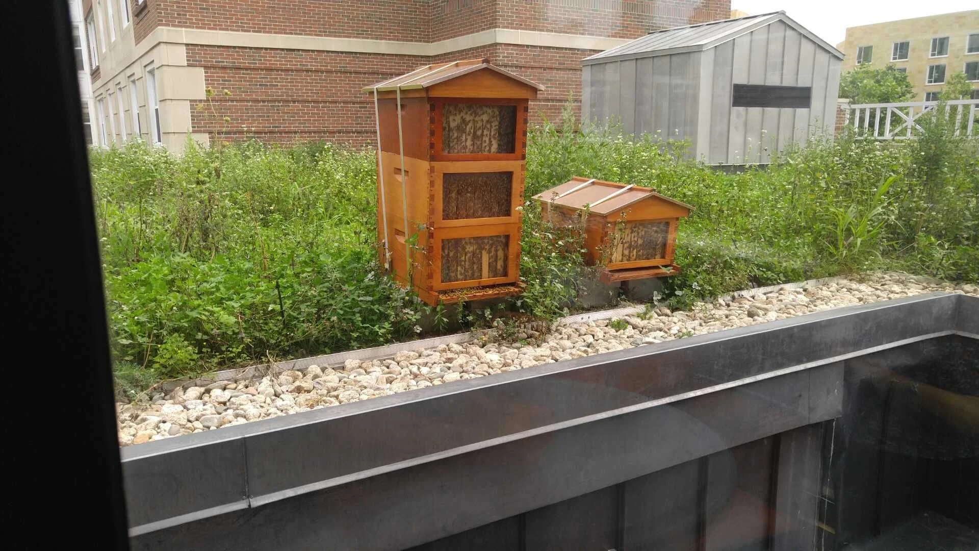 The 8,300-square-foot Omni Meadow on Harvard Business School’s McArthur/McCullom Hall marked the New England debut of Omni Infinity Media. Recover Green Roofs installed the weight-limited, multi-tier green roofs in summer 2016. In its first season, the establishing meadow yielded a bountiful harvest of more than 400 pounds of daikon radishes, which were served in the HBS cafeteria. The native meadow, including milkweed, aster, rudbeckia, and other herbaceous and woody perennials, is now a long-, well-established pollinator habitat and hosts bee hives.
